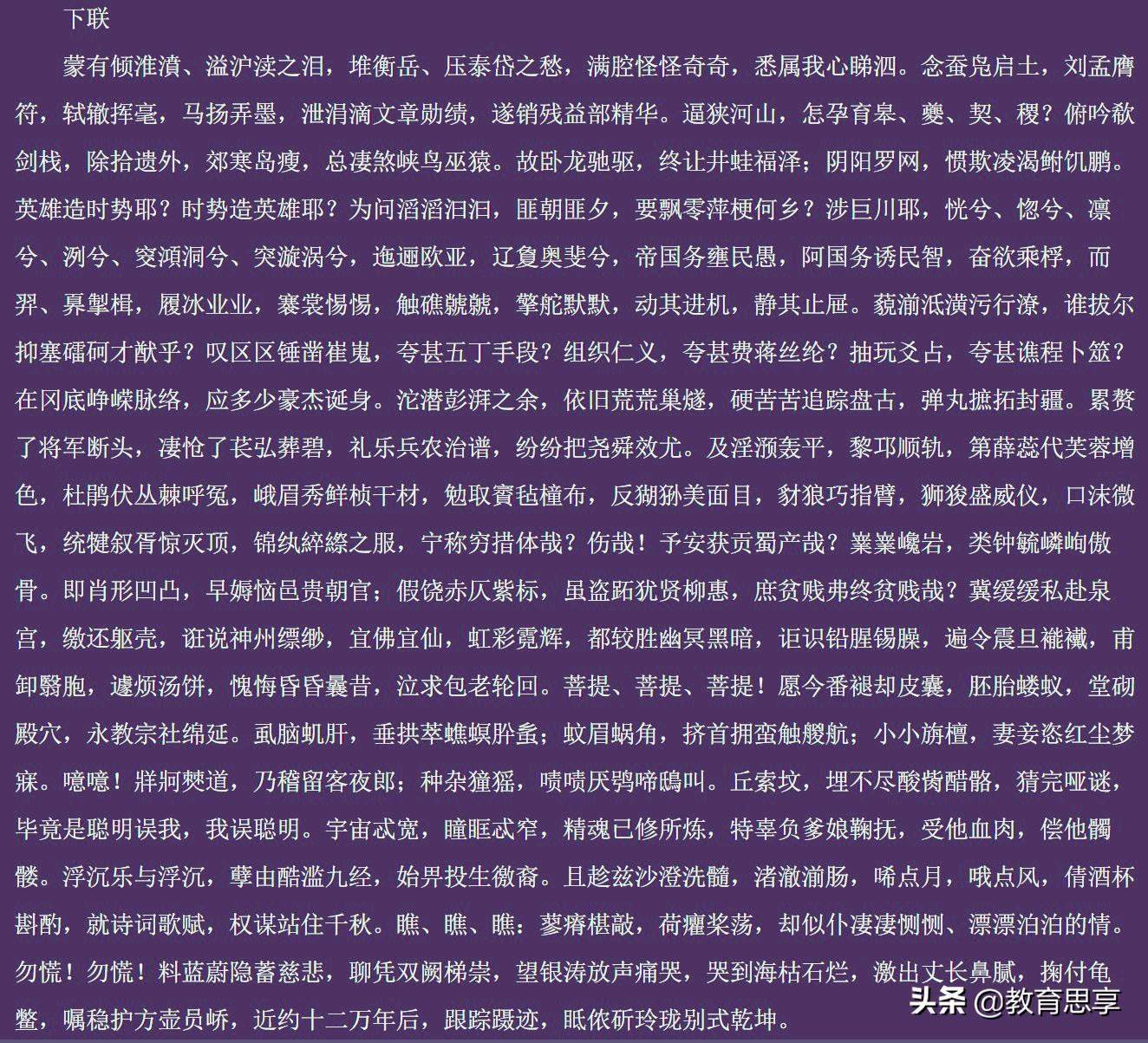 一个字的对联遍地都是,那史上最长的对联,会有多少个字?