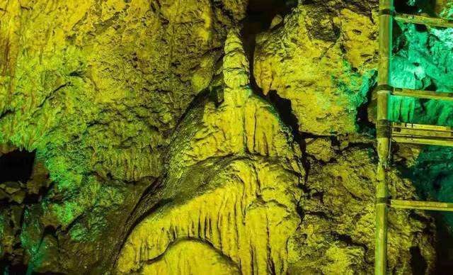 外洞厅北有一黄色“石瀑”,就是“吕先生藏身”景点,相传八仙之一 的吕洞宾曾隐身于此。靠厅北尽头就是“骆驼仰首”、“石蛙窥穴”、“雄狮迈步”、“金鹞展翅” 等景观,特别是洞中的岩溶景观"仙人田”层层叠叠,不由产生来到世外的感觉。
