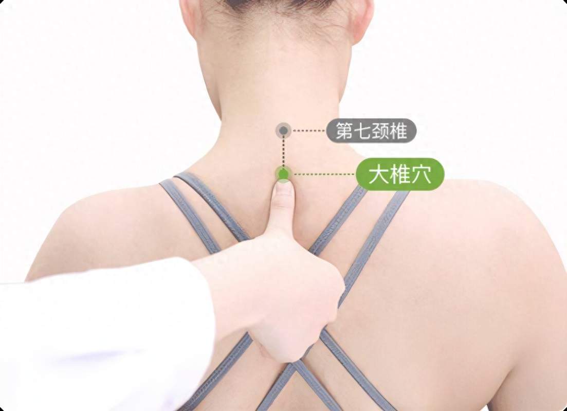 还可以揉、搓一下大椎穴位置,