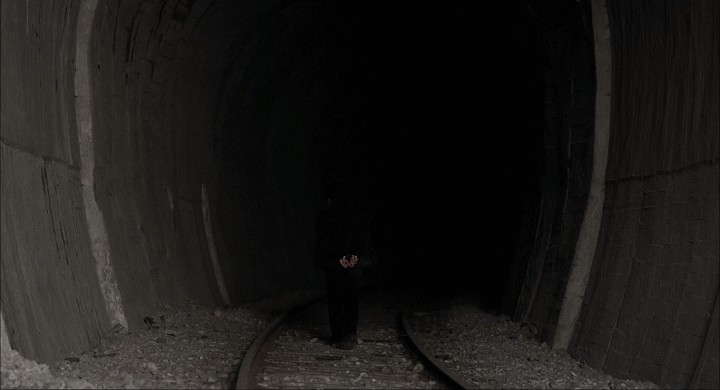 大家看这个镜头,在影片的最后,朴兴圭走向了隧道的深处,渐渐隐没在黑暗里,而两个警察却只能满含不甘地看着这一幕。