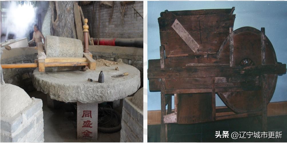 民国时期同盛金的石碾子、风车。道光廿五集团供图