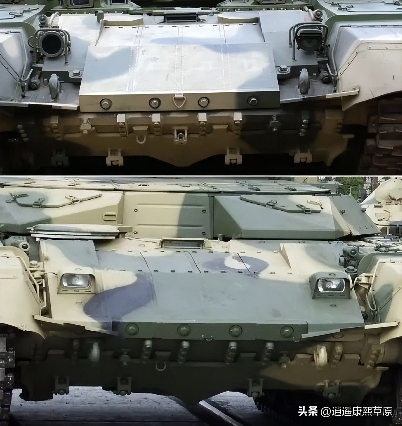 确实,有一个细微差别:新的反应模块仅安装在这些坦克车体的前上部,而炮塔前部仍保留标准的 Kontakt-5 块。而且,我们必须假设,关于这一点已经出现了大量问题和假设。从为什么需要这种混合物开始,到“虽然有很多Kontakt-5 炮塔防护模块,但实际上存在针对 Relikt 的动态保护元素”这样的奇妙发明结束。
