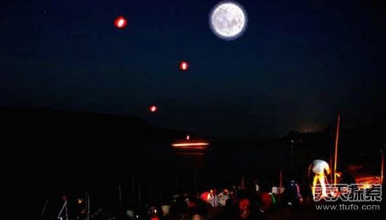 这些漂浮在半空中的火球从水面浮出,在消失不见之前持续在天空持续攀升好几十公尺。