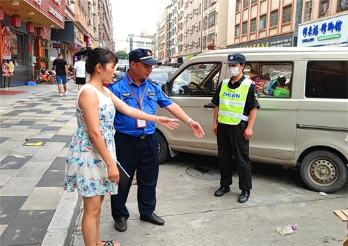 “您好,我们是大朗城管。这些停放在人行道上销售的电动车是你们的吗?这样已经严重阻碍了路人的正常通行,也影响了行车安全。”前段时间,叶润钊来到求富路社区内的一家电动车销售店铺,坚持“先协调沟通”原则,从商铺老板入手,主动与之交谈,运用这些年积累下来的与群众谈话劝导经验,最终成功说服,并带领执法队员协助商铺老板将乱摆放的电动车搬运回店内,恢复了人行道的整洁畅通。