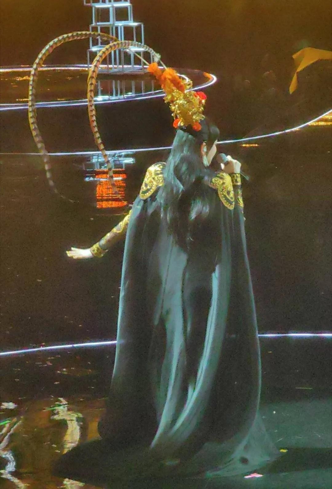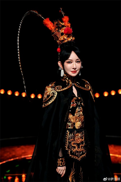萨顶顶身穿白色古风披风裙上台,几秒钟变装黑悟空装扮,英姿飒爽,引发全场高潮!
