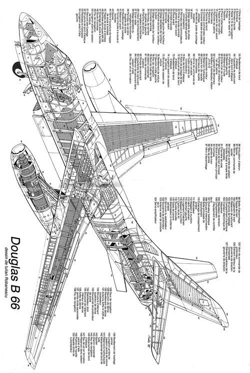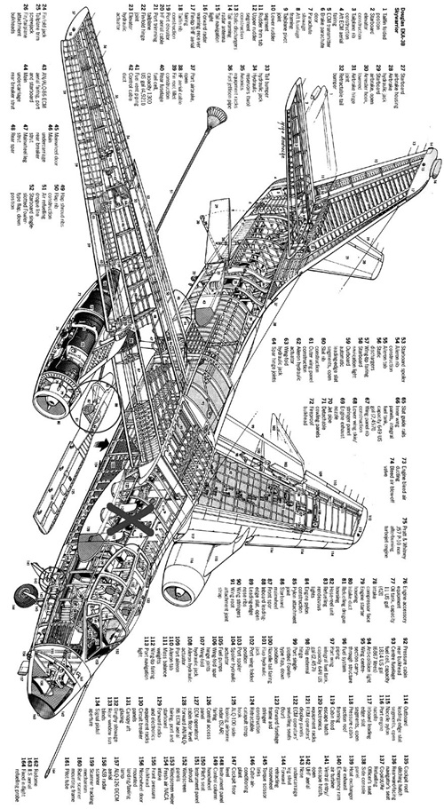 最初海军编号A3D,海空军统一编号后改为A-3,后被美国空军采用,编号B-66“破坏者”。各种A-3共生产了282架,B-66生产了294架。性能缓慢平庸,但是稳定可靠,从越战战争参战一直到沙漠风暴完成最后一项电子侦查任务,服役时间长达40年。不过作为A-3的飞行员,是要具备足够的胆量的,因为空中战士没有给机组准备弹射座椅。