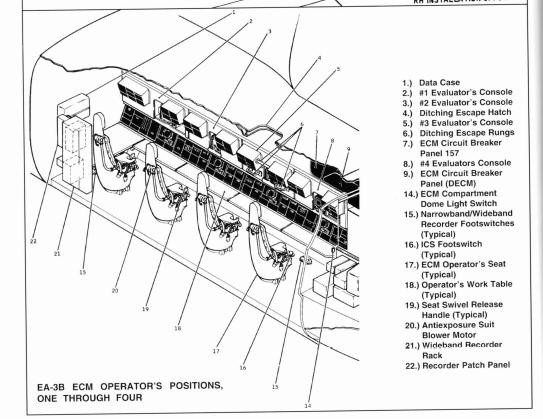 EA-3B/EKA-3B:电子战飞机,在前武器舱中带有加压舱,可容纳一名电子战军官和三名 ESM 操作员,增加各种传感器。一些早期型号有尾炮,但后续被替换为 ECM设备。冷战时期广泛用于全球电子侦查,是服役时间最长的型号。