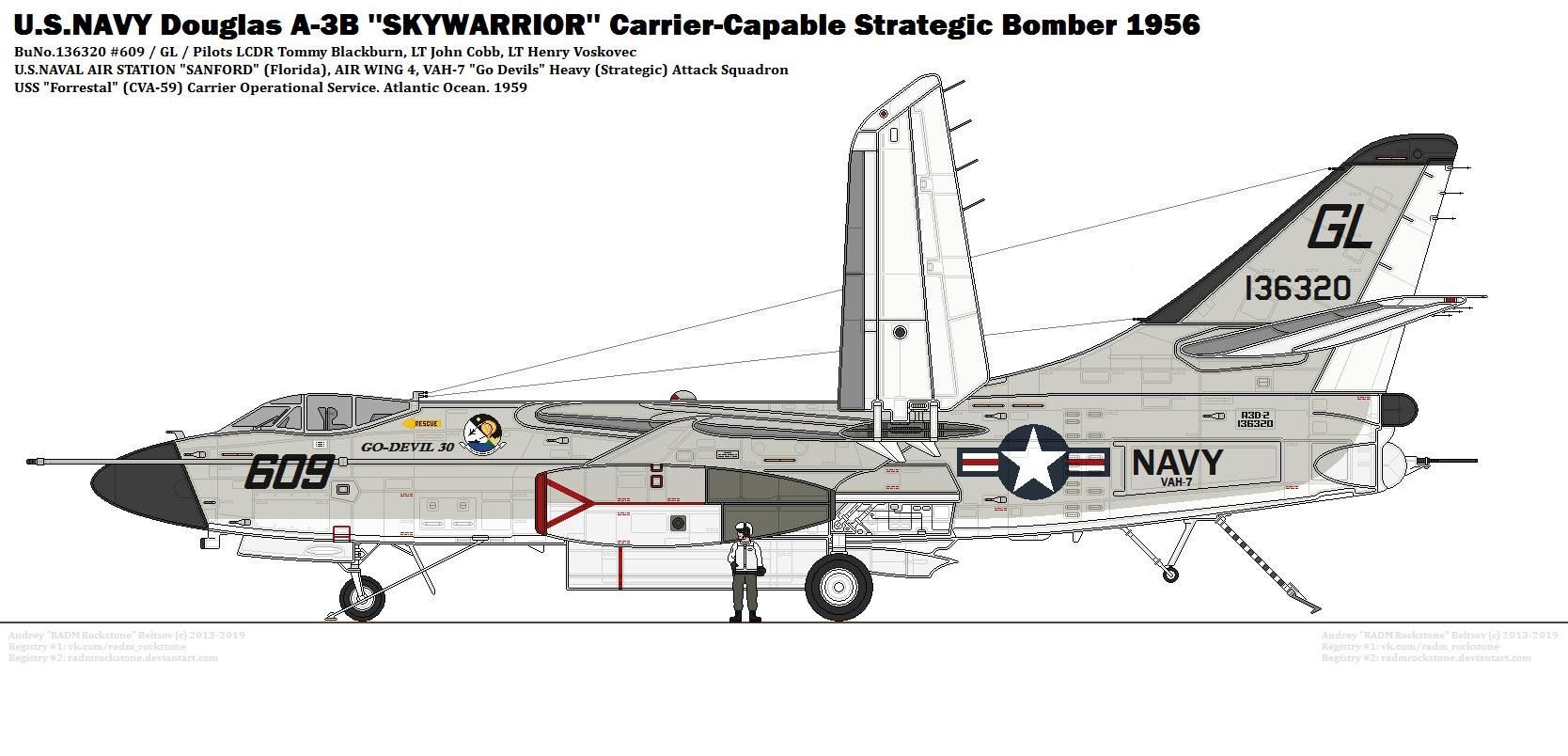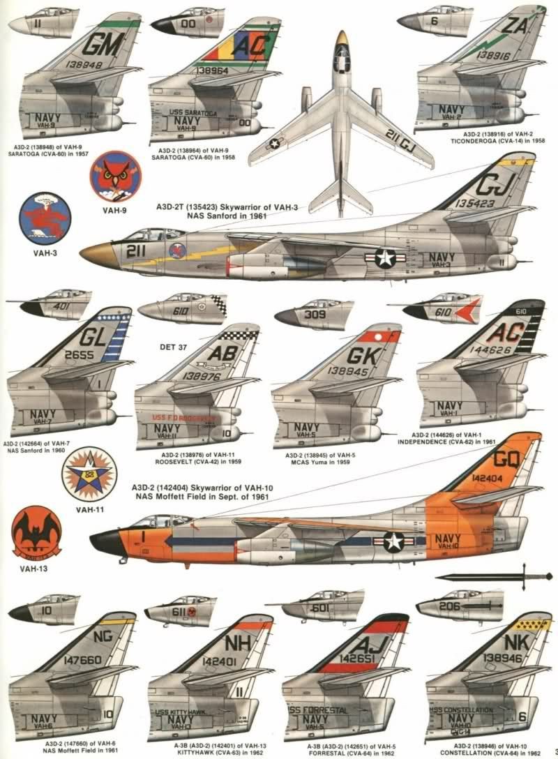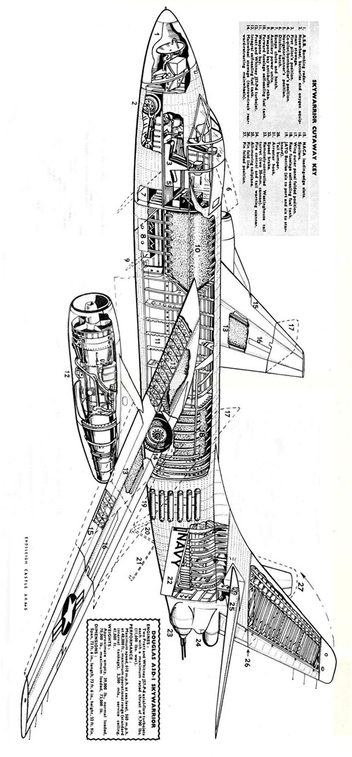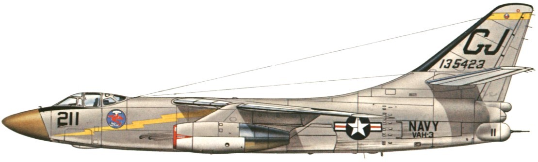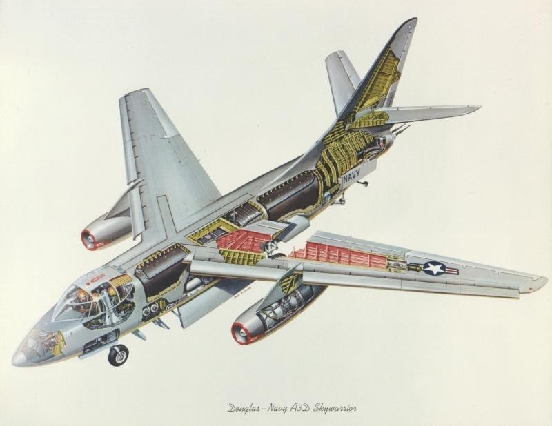1952年首飞,作为海军的舰载攻击/轰炸机开发,装备核弹,服役初期是美国海军核打击能力的主要力量,是目前为止航母上最大的舰载作战飞机。因为其庞大的体量,海军对其“榨干用尽”在其基础上还发展了EA-3电子战飞机、RA-3侦察机、KA-3空中加油机等型号。
