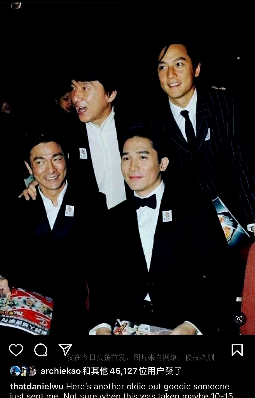 吴彦祖晒与成龙刘德华梁朝伟等男星旧照,男神同框超有年代感