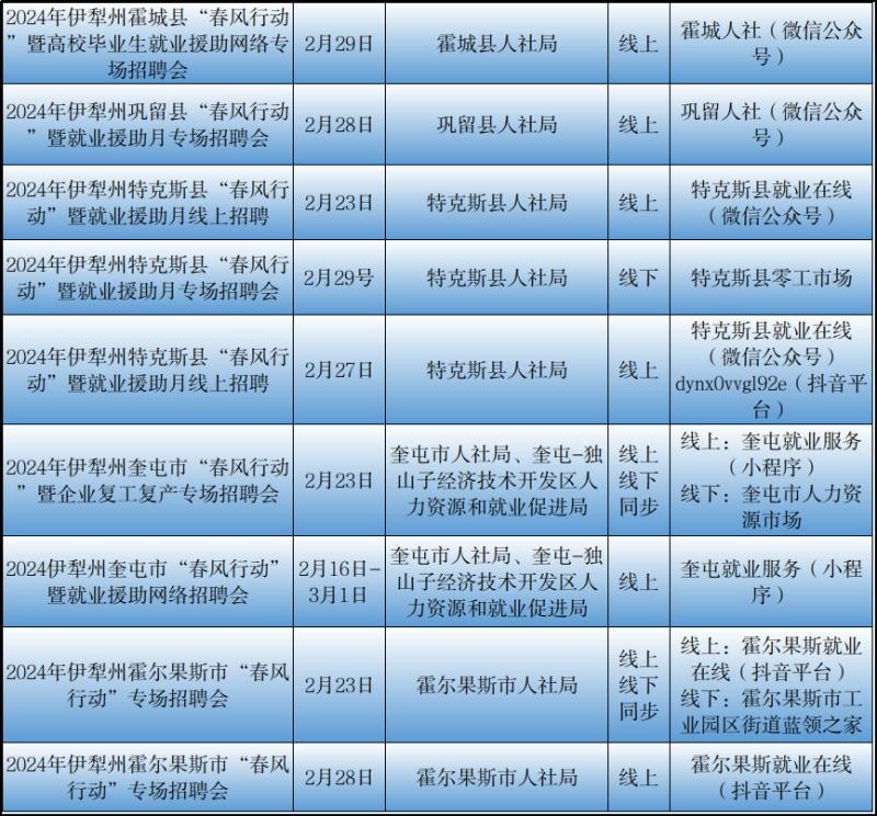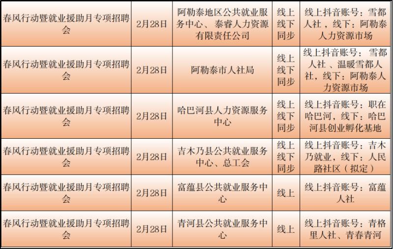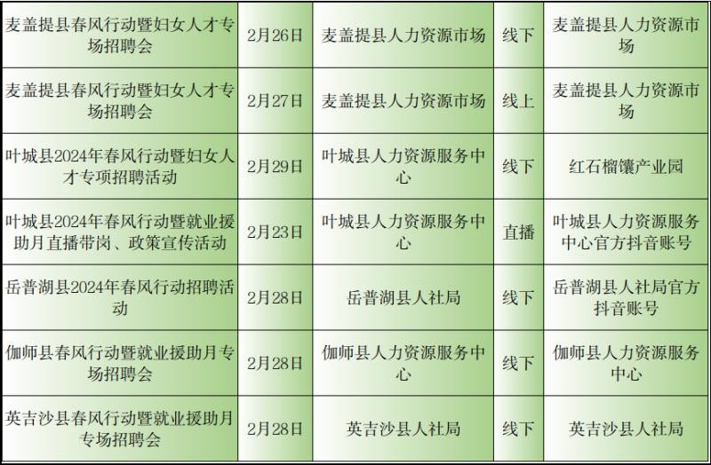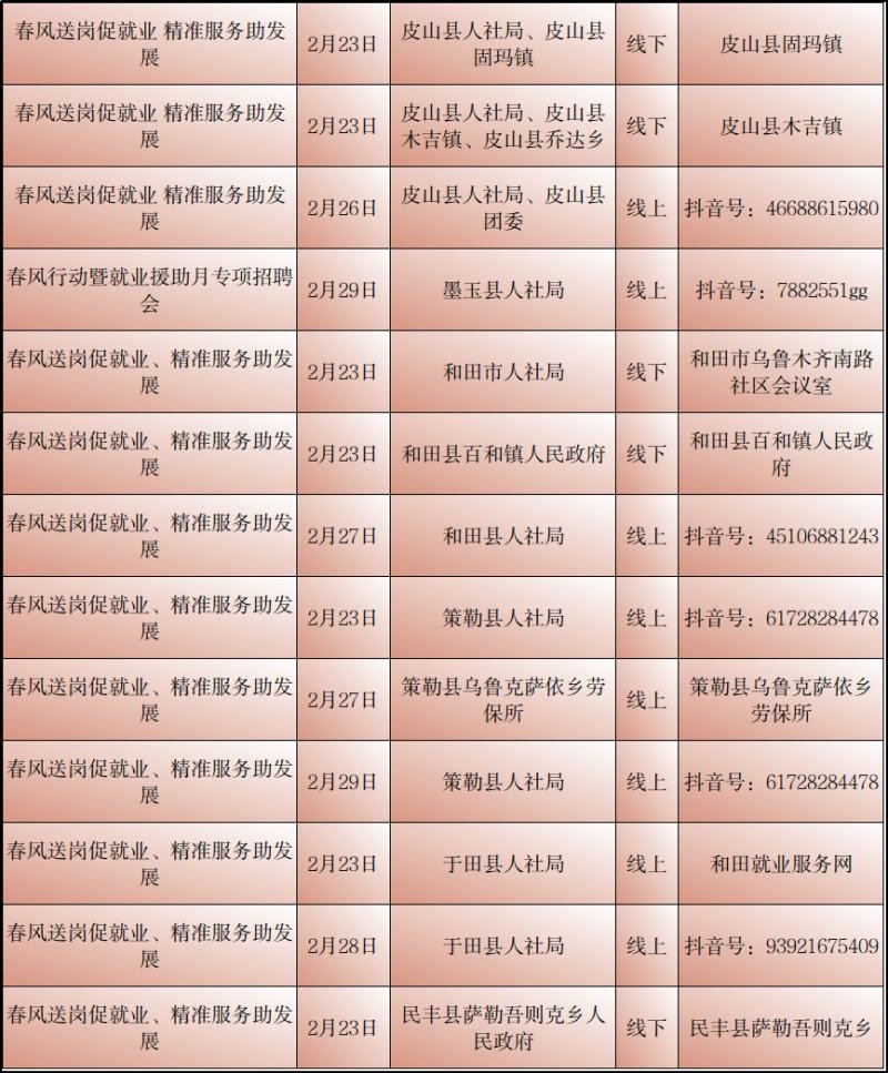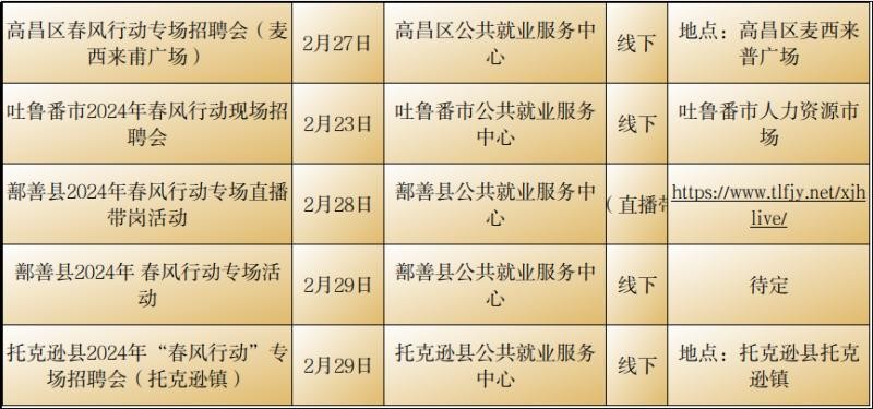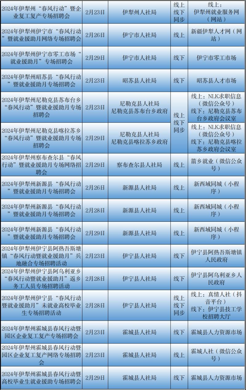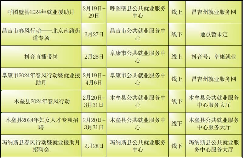 记者从自治区公共就业服务中心了解到2月23日至29日新疆各级公共就业服务机构将密集举行“春风行动”暨就业援助月专项招聘活动
