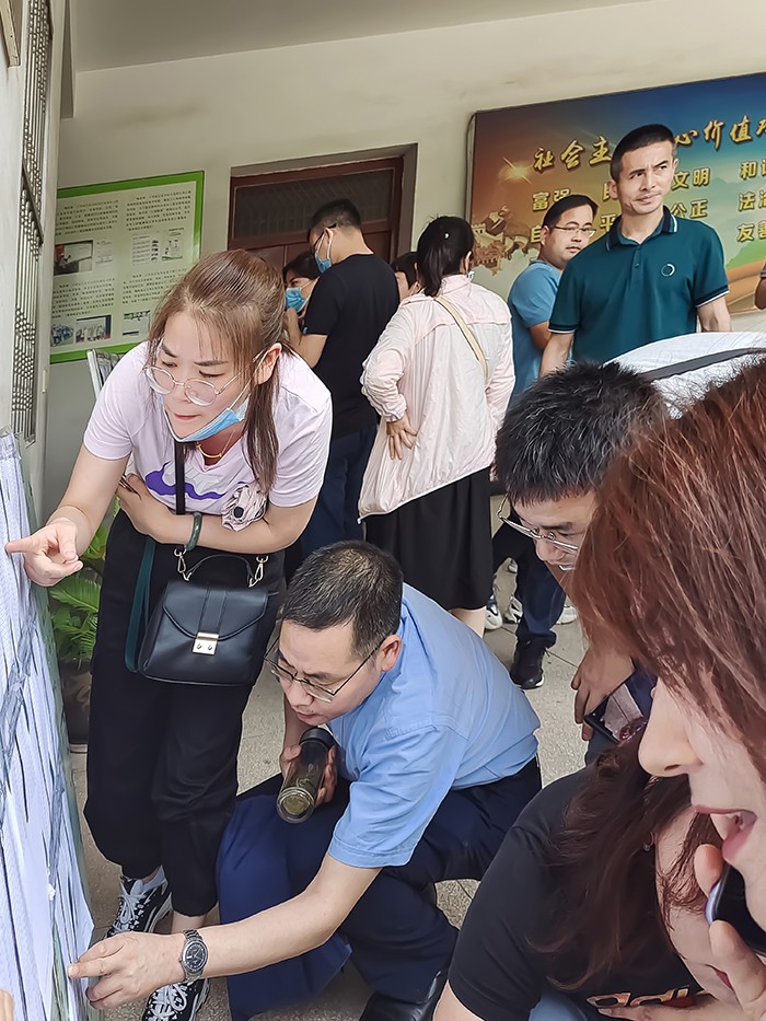 14,立马打印、张榜公布选中的派位号。工作人员还未张贴好呢,榜单前已经围了个里三层外三层