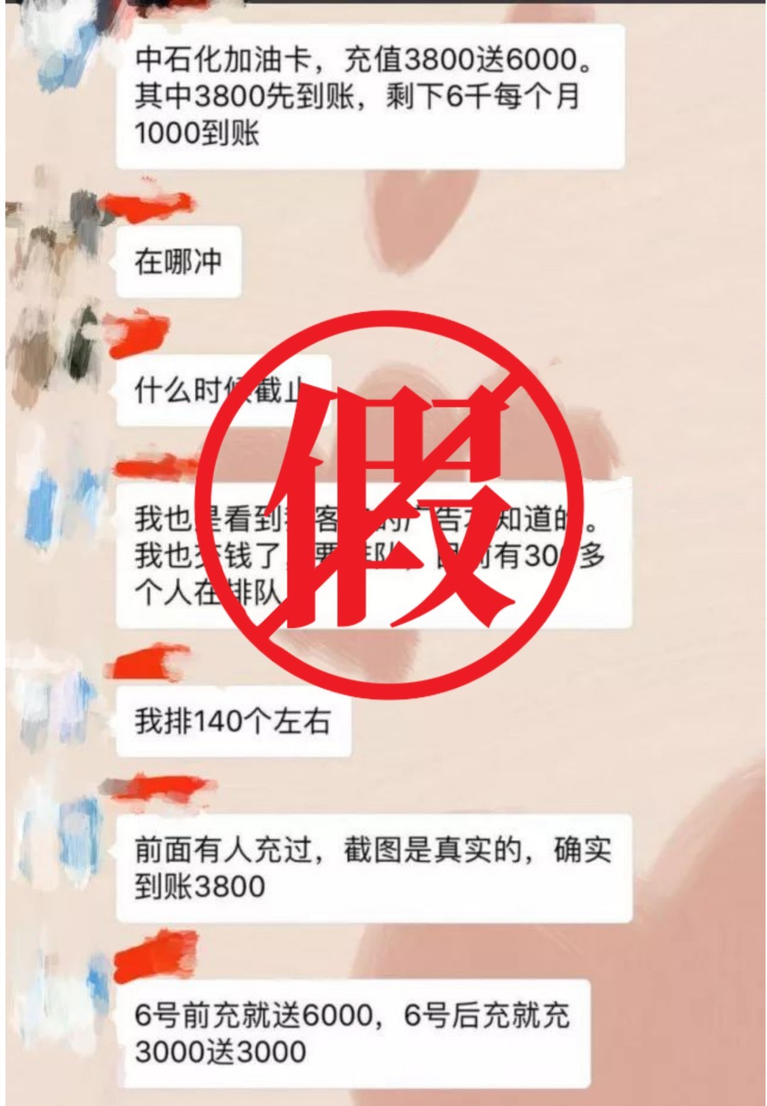 小金先充值了1000元,给了940元,3天后成功充值使用。对方随后又提出10000元起购折扣低至8折,也就是说只需支付8000元即可,并强调只有大客户才能拿到的资源,但是要等30天才能到账,小金毫不犹豫地再次充值了10000元。但是30天后,小金却并没有等来自己的油卡。手段2:值返现、按月返还江苏省无锡市的小林在微信群里看到有人发消息称可以加油便宜,小林私加其微信后,对方称充4500元返现5000元到油卡,不过这5000元是按月返还,小林毫不犹豫就给对方进行转账。