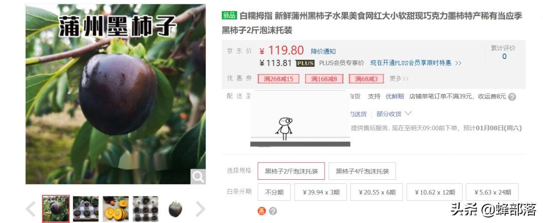 那么黑柿子的价格如何呢?我们先不说价格的,首先说其稀有程度,在写文章之前,小编还特意的去超市看了一下,走遍了很多个超市都没有看到这种水果,就连网络电商平台也很少有销售,只有一个国内比较大的电商平台上有销售,其价格还真的很美丽,根据上面的销售价格显示,2斤的价格为119.80元,也就是60元一斤。