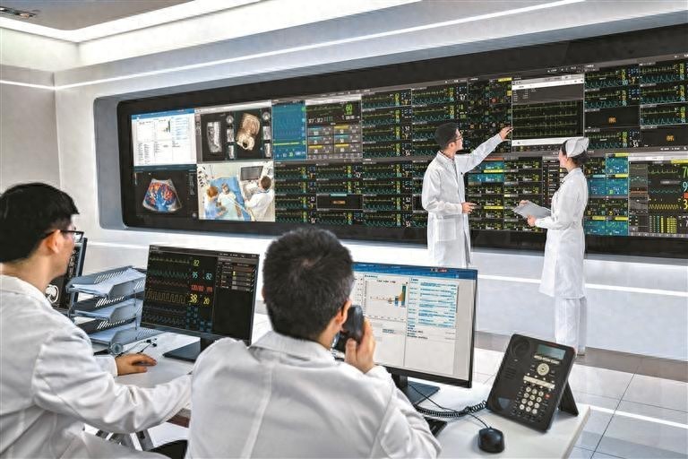 迈瑞医疗以科技创新不断突破关键核心技术。图为迈瑞医疗瑞智联生态系统。 深圳特区报记者 何龙 摄