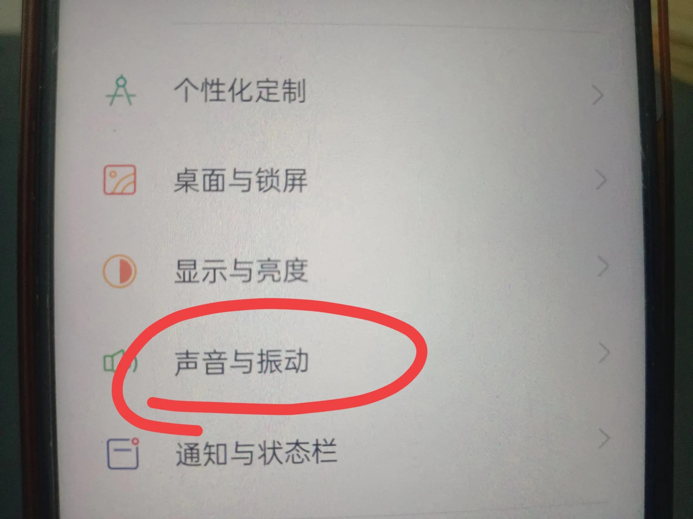 打开手机里的设置,往上滑,找到“声音与震动”。(如上图所示)