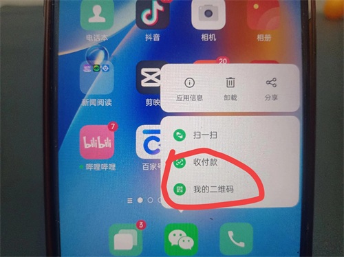 若需添加收付款或者我的二维码,都是长按 2 秒,添加到桌面后,只需点击一下,就能快速进入相应功能,而无需打开微信操作(如上图所示)