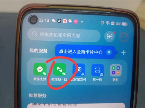 在负一屏页面找到微信“扫一扫”或者搜索相关服务。