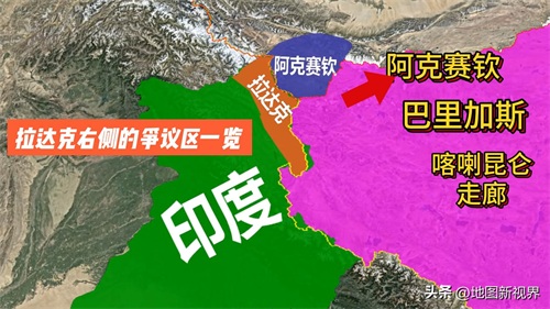 拉达克右侧的争议地区