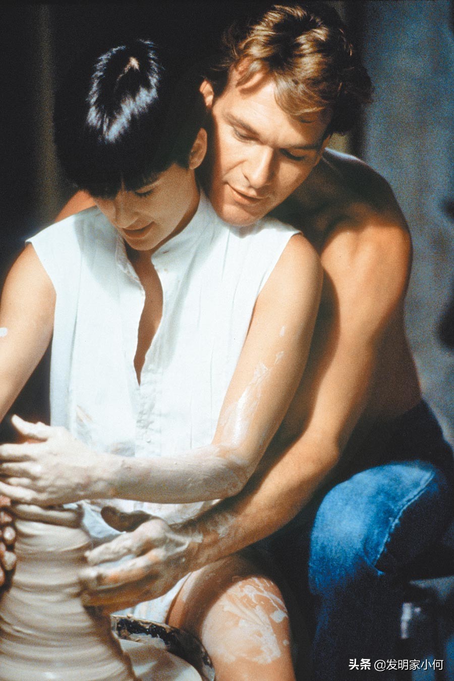 《第六感生死恋》好莱坞已逝男星派屈克史威兹(右)与黛咪摩尔的手拉坏堪称经典情欲场景。(捷杰电影提供)