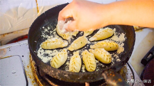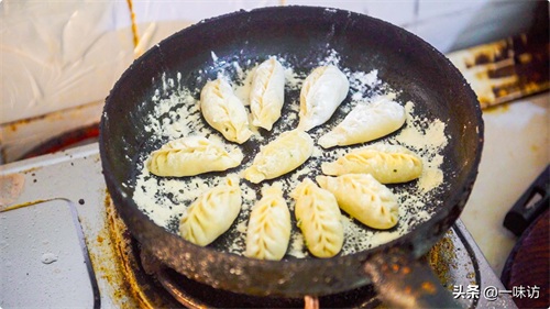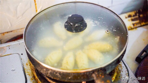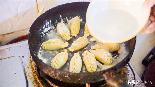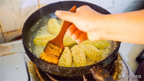锅贴包好后先用油煎炸一下,再用水焖煮。这样子既有焦香味又能喝到浓郁锅贴汤,吃完之后浑身暖暖的别提多舒服了。