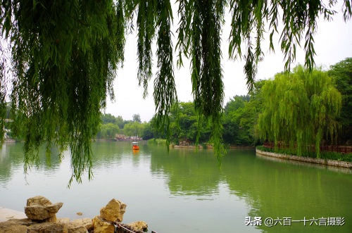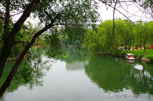有点江南景象的绿柳碧水小船,很是幽静