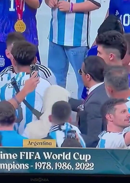 在阿根廷队捧得大力神杯后,撒盐哥也加入到了阿根廷人欢庆的行列中,不知道是通过什么方式,撒盐哥得到许可,进入了内场,和阿根廷的冠军成员们来了一次零距离接触。而作为阿根廷队的领袖,梅西自然是撒盐哥追逐的焦点,从媒体赛后发布的视频来看,撒盐哥在进入场内后,多次生拉硬拽梅西,希望和他合影。