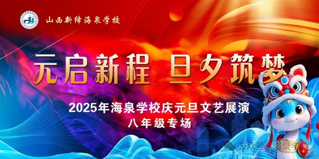 雄心踏雪映朝阳,江海浩渺启新程。2024,复盘、归零、更新;2025,启新、砥砺、向上!天以新为运,人以新为生。新的一年,海泉人将以"守正创新"的智慧涵养初心,以"兴教强校"的担当续写精彩,在培根固本中强基赋能,于立德树人处培育英才。愿我们都能成为蛇年新剧本的主角,追梦大海星辰,演绎华美新章。