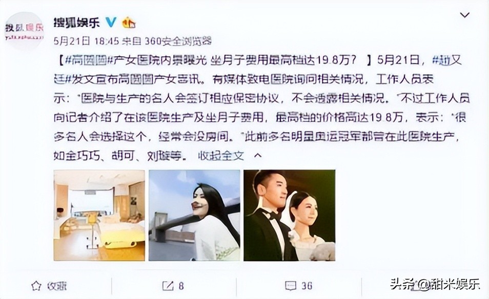 赵又廷更是让她入住20万一月的月子中心