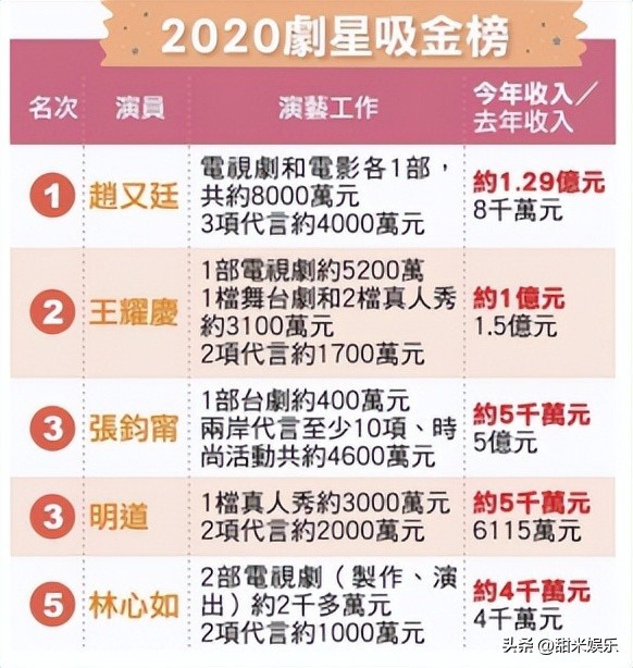位于台湾明星吸金榜第一名