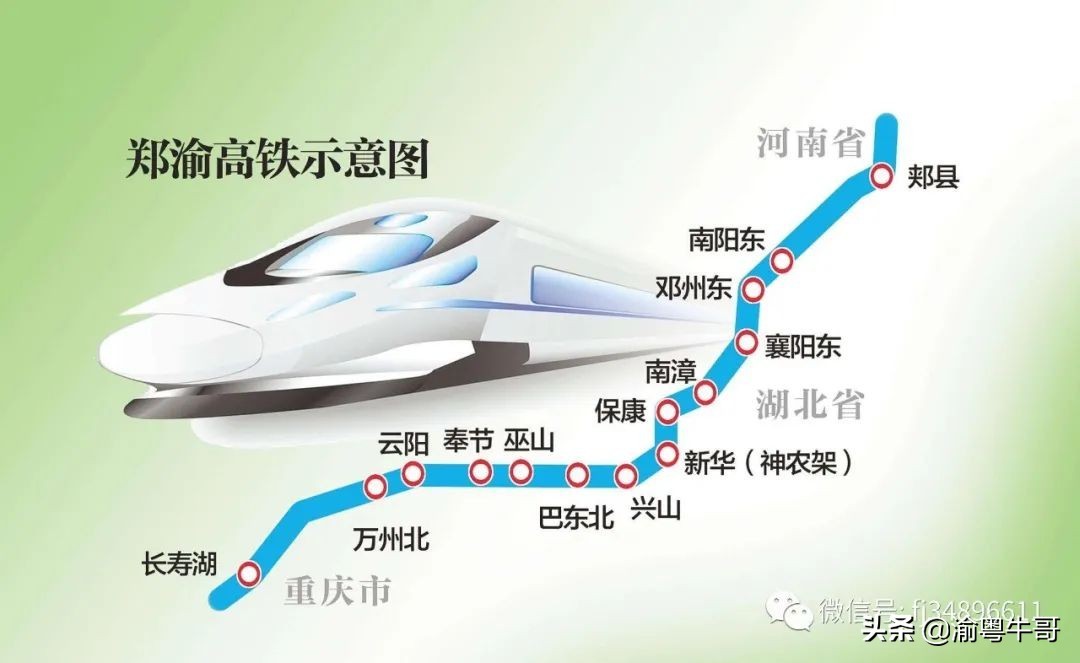郑渝高铁资料:是河南郑州到重庆市的高铁,由郑万高铁和渝万高铁两部分组成,郑州到万州段全长818千米,设计时速350公里/小时,万州到重庆段245千米设计时速250公里/小时,渝万高铁2016.11.28已正式通车。郑万高铁重庆段(万州-巫山段)预计2022年5月正式通车,2022年7月全线(湖北段)通车。
