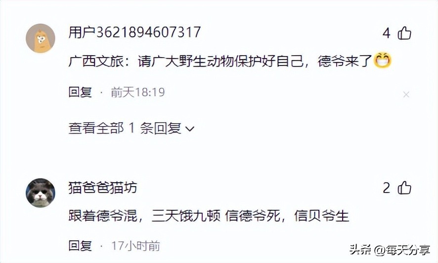 无数网友纷纷前来打卡,有人调侃他:"吃螺蛳粉","中国野味别乱吃,小心牢底坐穿",也有桂林市民殷勤相邀:"德爷别走,留下来我们教你钓黄辣丁,烧烤大头菜!"
