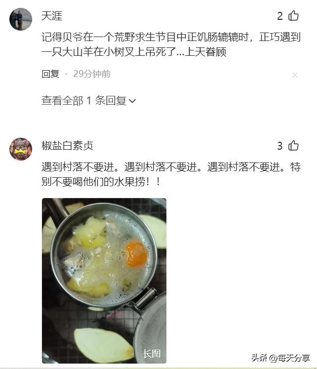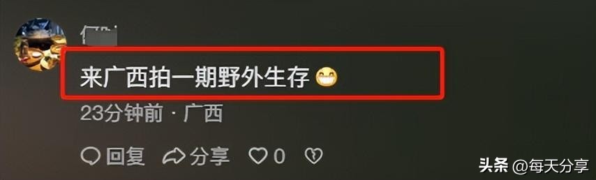 这个消息一出,立刻再次引爆了网友们热烈的讨论和期待。有人说桂林虽然是人口大市,但山多林密,自然环境完全可以满足生存的要求。也有人提出了各种看似荒诞但实则可行的建议,比如趁夜色潜入丛林,埋下作物、钓鱼工具以及其他生存用品,待德爷到来之后就有"底包"可用了。