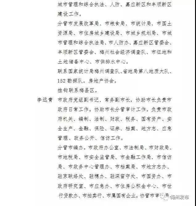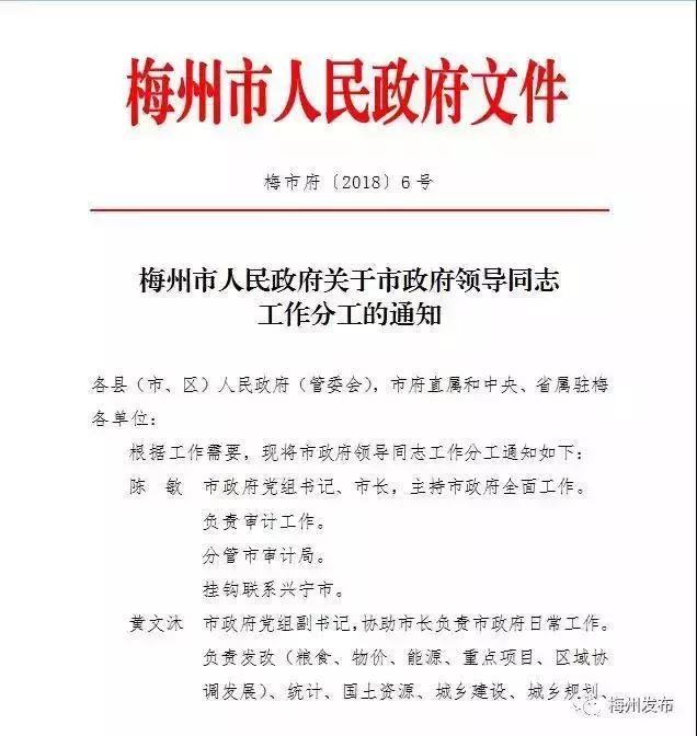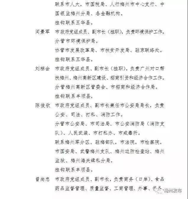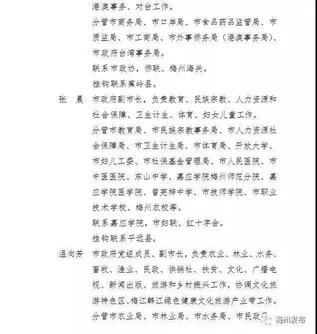 梅州市人民政府领导同志最新工作分工