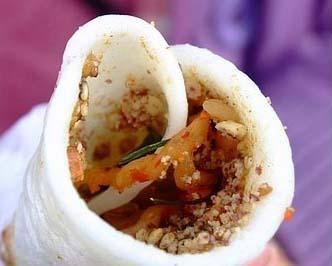 大理生皮的制作方法很独特,用松毛将生猪皮上的毛烧掉,用热水洗净,通过这种方式处理的猪皮,色泽金黄,肉质细腻,完全没有腥味。大理生皮一般是蘸着佐料吃,肠胃不好的人,食用生皮要适量。