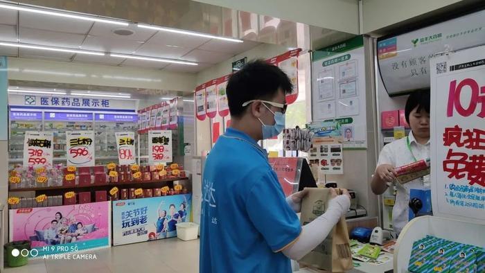 达达快送骑士在益丰大药房接单准备配送