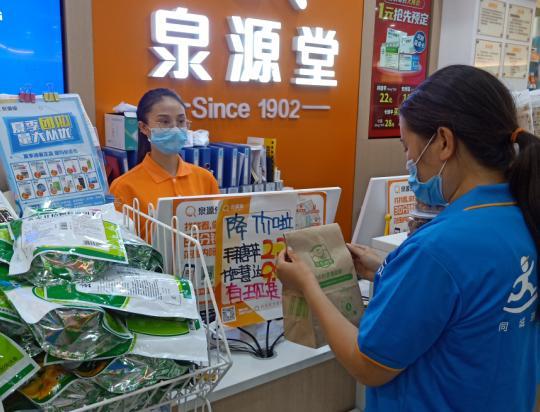 达达快送骑士配送前在泉源堂成都门店核对药品订单信息