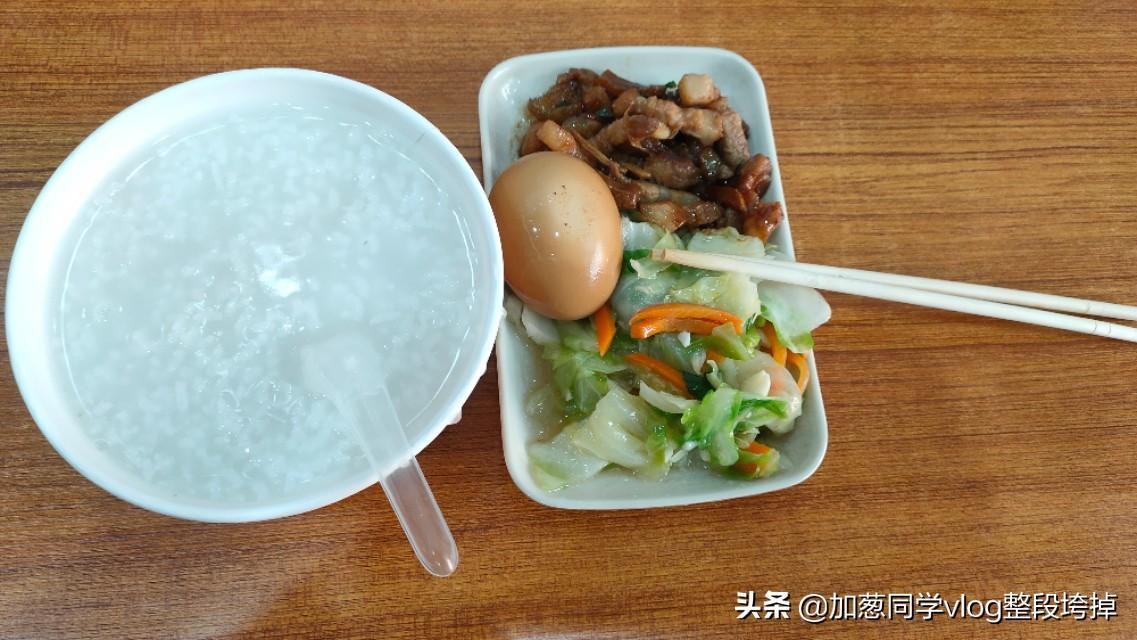 一颗鸡蛋+一勺白菜+一勺肉丝+一碗粥,花了13元