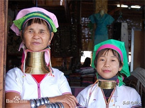 生活在泰国与缅甸交界地区的长颈族,从小就有脖子套铜环的风俗,一年套一个铜环,用来拉伸脖子。