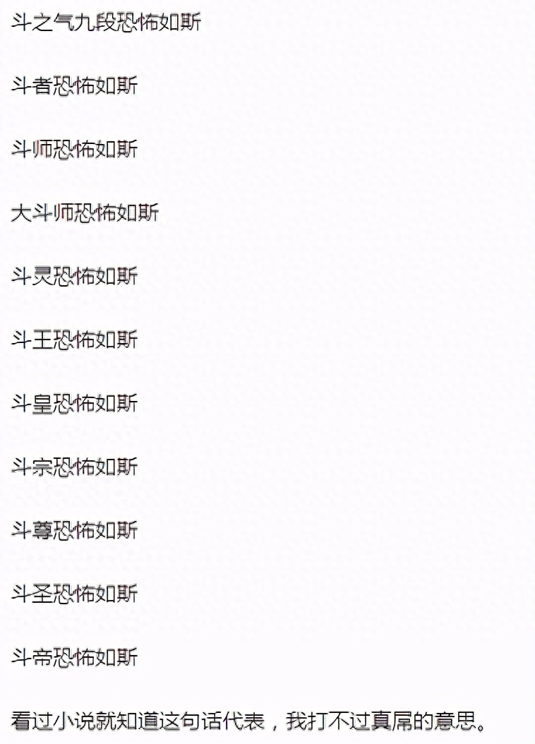 但是大家都知道,前期塑造得很强悍的斗宗强者以及斗尊强者,在后面的剧情里基本逃不过“圣阶多如狗,神阶遍地走”的局面,那么这句“恐怖如斯”自然而然也就变成了一句嘲讽他人眼界不足的玩梗。