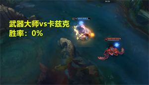 -卡兹克:胜率接近0%,不论出什么装备都打不过卡兹克;卡兹克三段隐身下来,武器大师有时连被动都没叠满就黑白屏