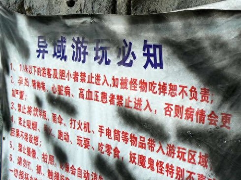 魔窟每次只能进10个人,进入了异域魔窟,大门会被重重地关上!屋内一片漆黑,只能听见带动 大铁笼上升的金属链条在咔咔作响。路边的木桶里冒出一个个看不清容貌的脑袋,时而还会出现拿着棍子挥舞的“鬼”。更刺激的是,往往游客觉得已经看到出口, 在毫无防备的时候还会有一个“鬼”在门口向你招手。游客不仅需要躲过一道道玄妙的机关,在黑暗中摸索着前进,而且在冥冥中似乎还会听到鬼魂在哭泣。
