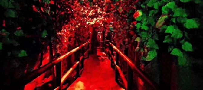 红磨坊,是恐龙园最暗的鬼屋,完全就是伸手不见五指,还有下坡隧道需要低头穿过,加深恐怖氛围啊。红魔坊有限时密室,有些房间要强制看完一段故事影片才会开启下一段门,不是你想跑出去就跑出去的。