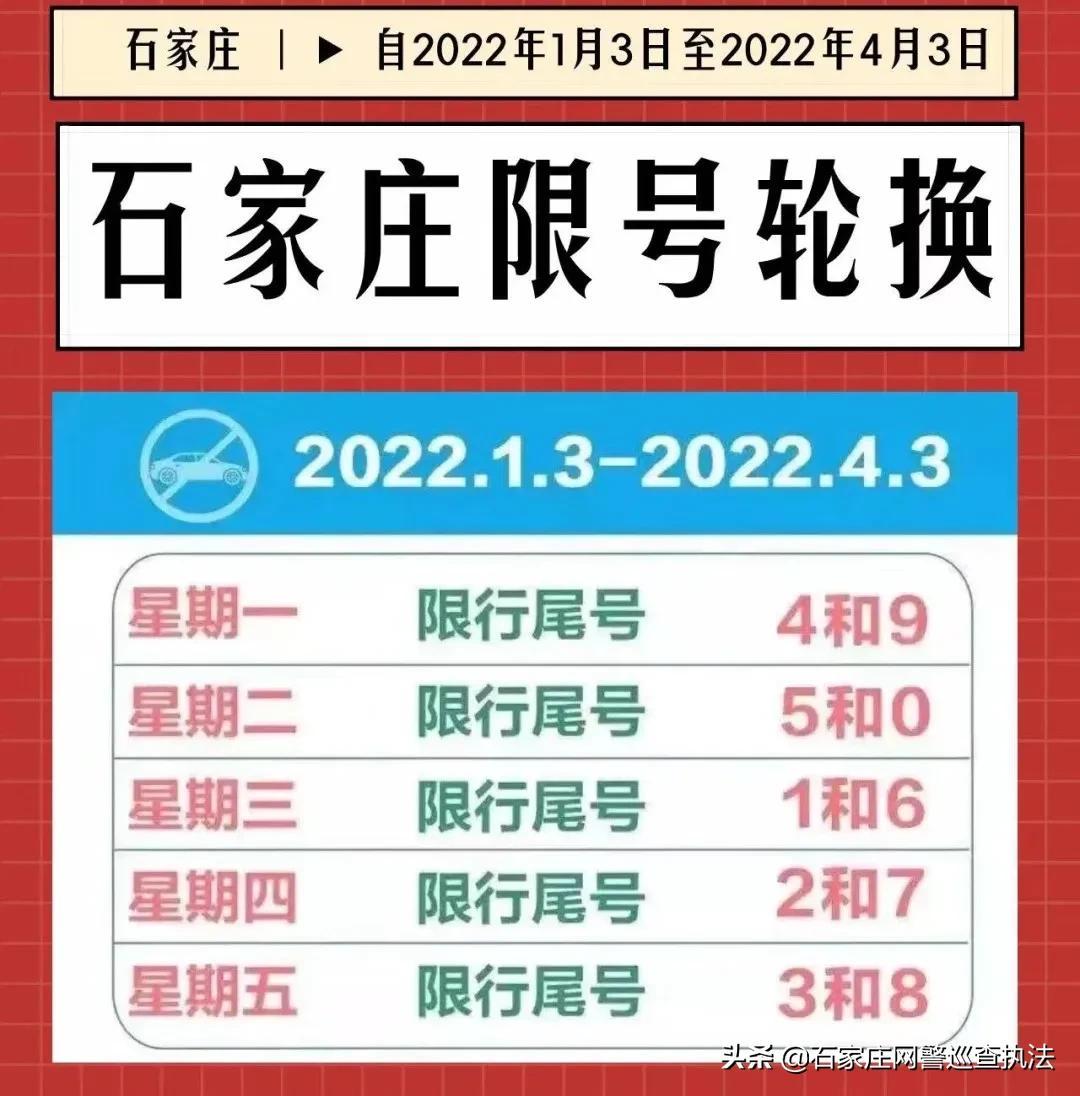 石家庄市主城区1月4日(周二)限行尾号5和0。