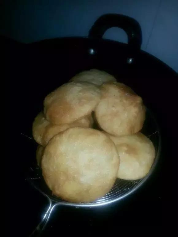 烫面里装入白糖馅儿,炸地外焦里嫩,咬一口,糖汁儿顺着手指往下流,特别好吃。