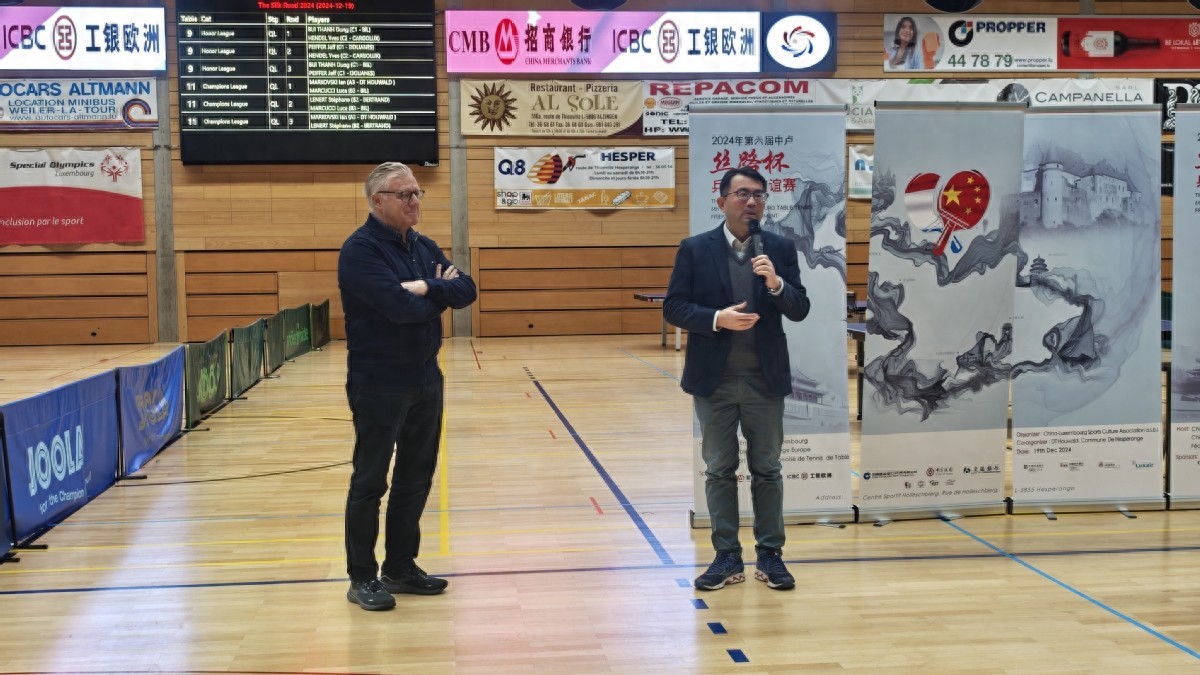 中国日报布鲁塞尔12月20日电 12月19日晚,由中国驻卢森堡大使馆主办、中国乒乓球学院欧洲分院承办的第六届“中国-卢森堡丝绸之路杯乒乓球友谊赛”在卢森堡埃斯佩朗日市体育中心盛大举行。