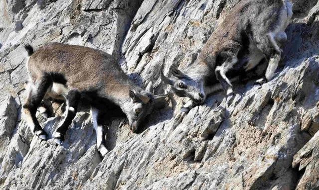 岩羊以青草和各种灌术的被叶为食,来季嘴食枯草。它们常到 固定的地点饮水,到了寒冷季节也可络食冰雪。它们植攀离,恶直峭 壁上只要有客得下一只蹄之地,它们使能攀登上去,一跃可达两三 米,若从高处向下更能纵身一跃10多米而不致排伤。岩羊是中国国家 二级重点保护野生动物。