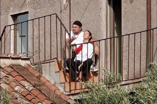 小李子和26岁超模女友罗马度假 享受户外日光浴