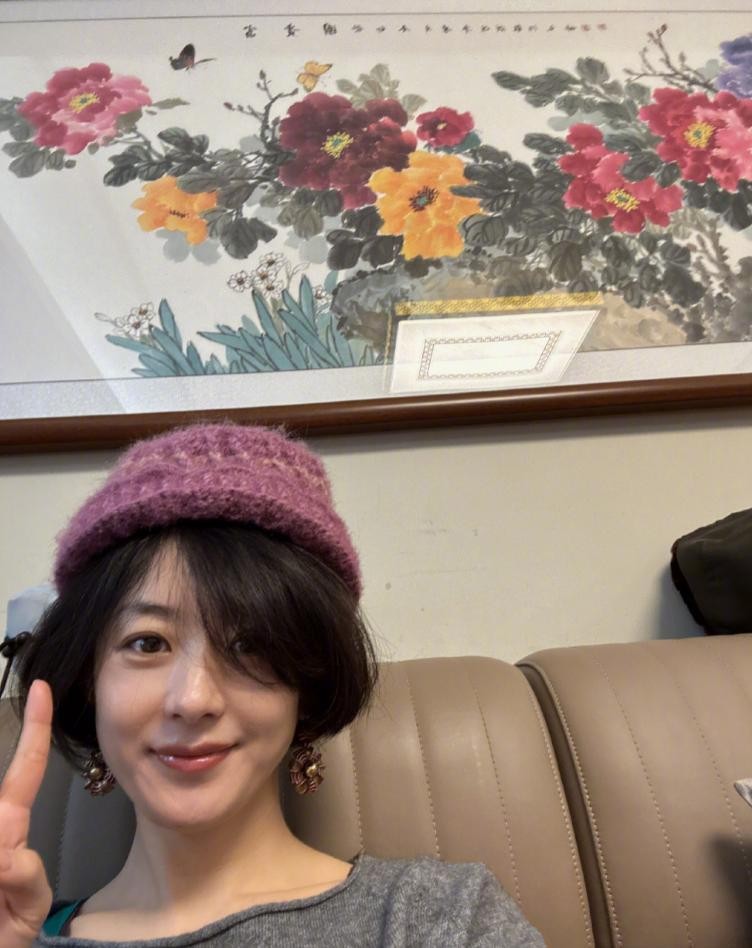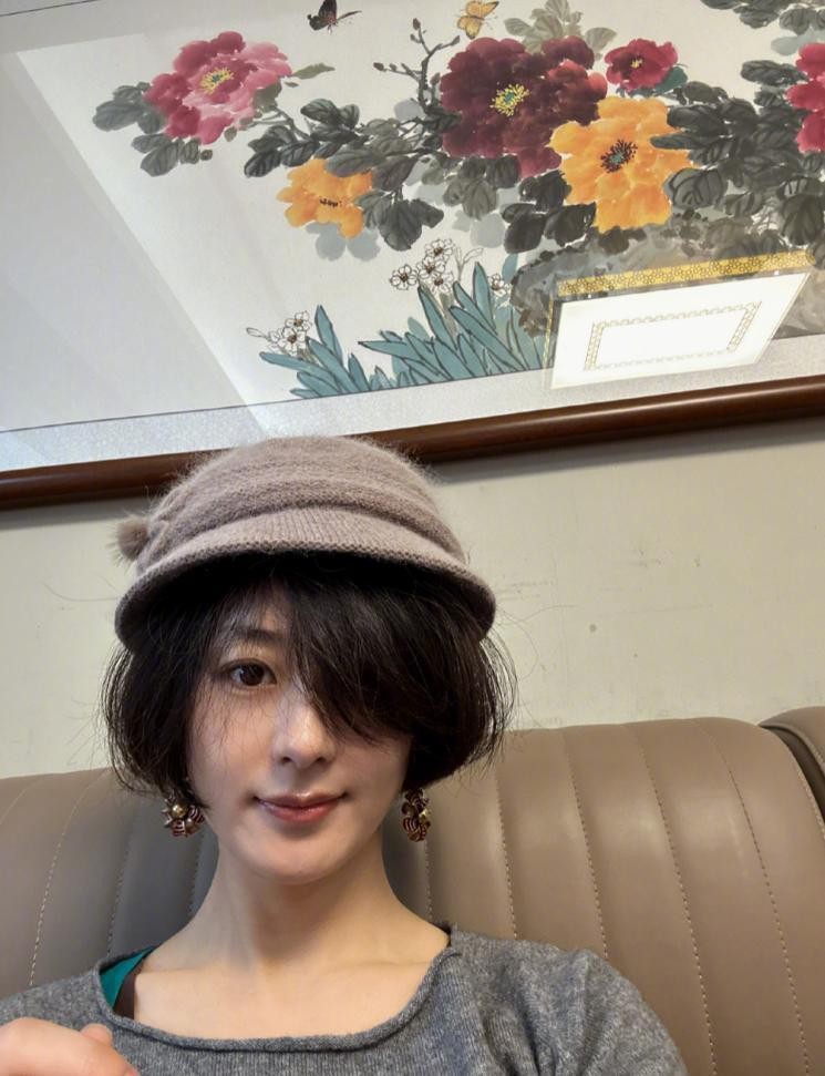 照片中的赵丽颖,一头利落短发,还特意捯饬成卷卷的模样。她戴着奶奶的粉紫色帽子,仿佛下一秒就能直接 “穿越” 进年代剧的拍摄现场。