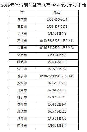 近日,山东省教育厅发布《关于公布2019年暑假期间各市规范办学行为举报电话的通告》,公布了山东省教育厅以及各市的暑期补课举报电话。