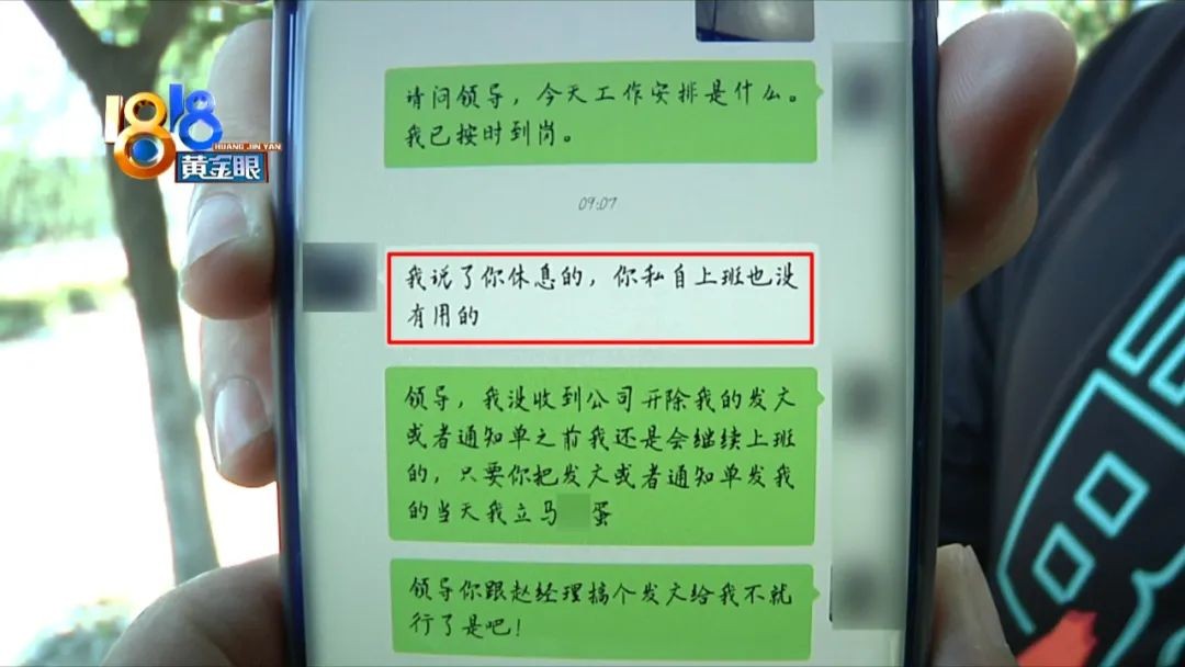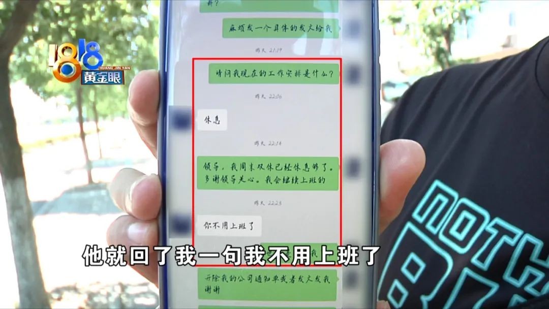 小肖:“昨天我就问了一句,我现在工作安排是什么,他就说是休息,我说我周末双休已经休息够了,我说我会继续上班,他就回了我一句,我不用上班了,我就理解为那是开除我了嘛。”